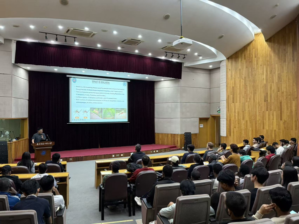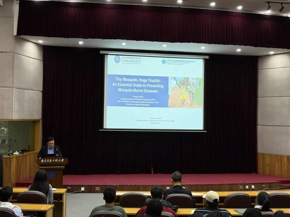为增强国际学生对常见传染病的认知,保障其在校期间的健康安全,10月16日下午,我校特别邀请江苏省血防研究所疟疾室主管医生梁成,为留学生同学们带来了一场主题为“认识与预防疟疾、登革热和基孔肯雅热”的专题健康讲座。本次活动旨在帮助来自不同国家和地区的同学们更好地适应在华生活,提升健康风险防范能力。讲座由国际教育学院党总支书记李岩主持,总务处(后勤服务总公司)综合门诊部主任王士荣出席。
