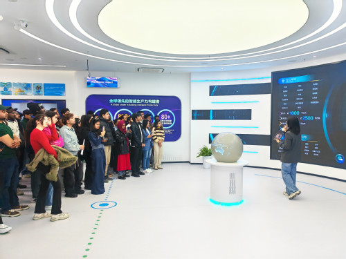 此外,随队前往的近60名国际学生,先后参观了浩鲸科技WHALE SELECT Creative Space多维文化空间及企业展厅,在沉浸式体验中直观感受企业的发展理念、雄厚技术实力与独特文化氛围。参观结束后,在宣讲教室,企业宣讲组老师向在场学生详细解读了企业业务布局、岗位需求及发展前景,以专业易懂的讲解,为同学们明晰了今后的职业发展方向,搭建起学生与企业对接的便捷桥梁。
