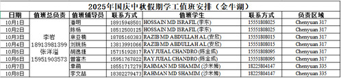 2025年国庆中秋假期学工人员值班表